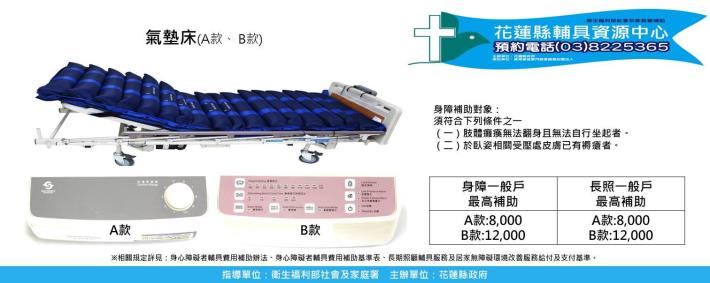 氣墊床 功能: 預防、減輕褥瘡情形 對象: 1. 無法自行翻身 2. &nb...