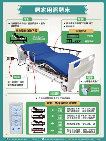 居家照顧床 床板: 1. 支撐使用者身體,體重較重者,避免鋼網材質。 2. 坐在第二片先抬腳再...